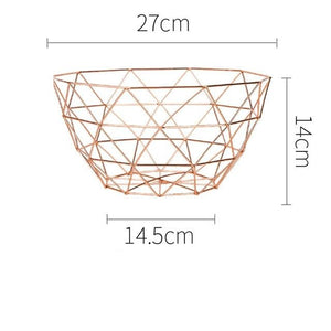 Stainless steel geometric baskets with a matte black or shimmer gold/rose gold finish. These strikingly shaped baskets are a piece of art in themselves and make your vibrant fruit and vegetables pop even more. Perfect gift for new home owners, or even one for yourself! These large sized baskets can be used in a variety of ways and a variety of rooms.