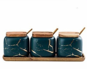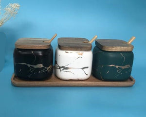 These beautifully crafted ceramic seasoning jars should be the centrepiece for any table. No more commercially produced salt and pepper shakers to ruin the aesthetics - store your sugar, salt, pepper and other commonly used condiments right on the table. Why limit yourself to just dry seasonings, when you can also dispense soy sauce, olive oil, balsamic vinegar from one of our beautifully marbled canisters.