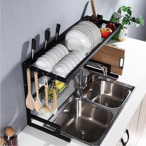Not to worry with this over the sink drying rack. This stainless steel rack has a black finish that will stand the test of time. Equipped with customisable accessories like wire baskets, trays and hooks you can DIY this rack to perfectly suit your kitchen and dishes.