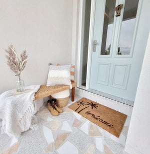 Our Welcome Palms Doormat is a beautiful and unique way to welcome friends and family to your home.